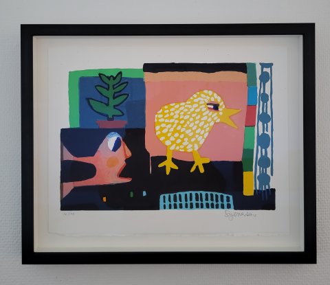 10. Leif Sylvester, litografi, "Den vrede kylling", 33x41