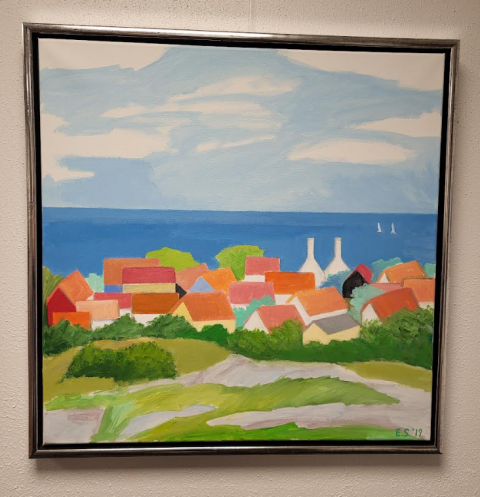 5. Ebbe Svitzer, akryl på lærred, "Gudhjem", 64x64